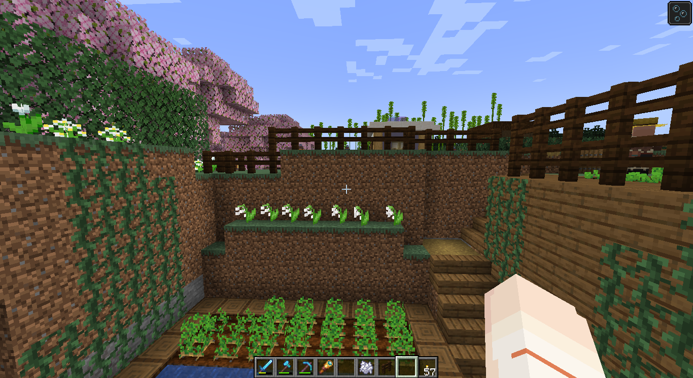 Just as a coincidence I am wondering if there are other players who are also having strange things occurring in their game? Attached is a screenshot of some Lily of the valley flowers that up until entering creative mode my fox, Cinnamon sat down in and wouldn't stand back up again. Also attached is a screenshot of some farmland and buildings. For some reason for a little while my villagers kept jumping off the ledges in this area hurting themselves. As in multiple villagers making back to back to back jumps. My villagers are slowly disappearing and I'm a little afraid that the two issues are related. No new blocks were added in this area either.