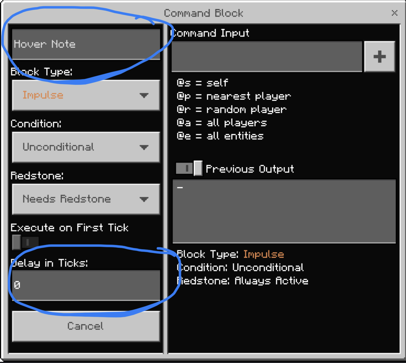 In Minecraft Bedrock in the command UI you have the option to change the command block name and the tick delay. Java edition has neither options. Java also doesn't have the /structure command unlike bedrock.
