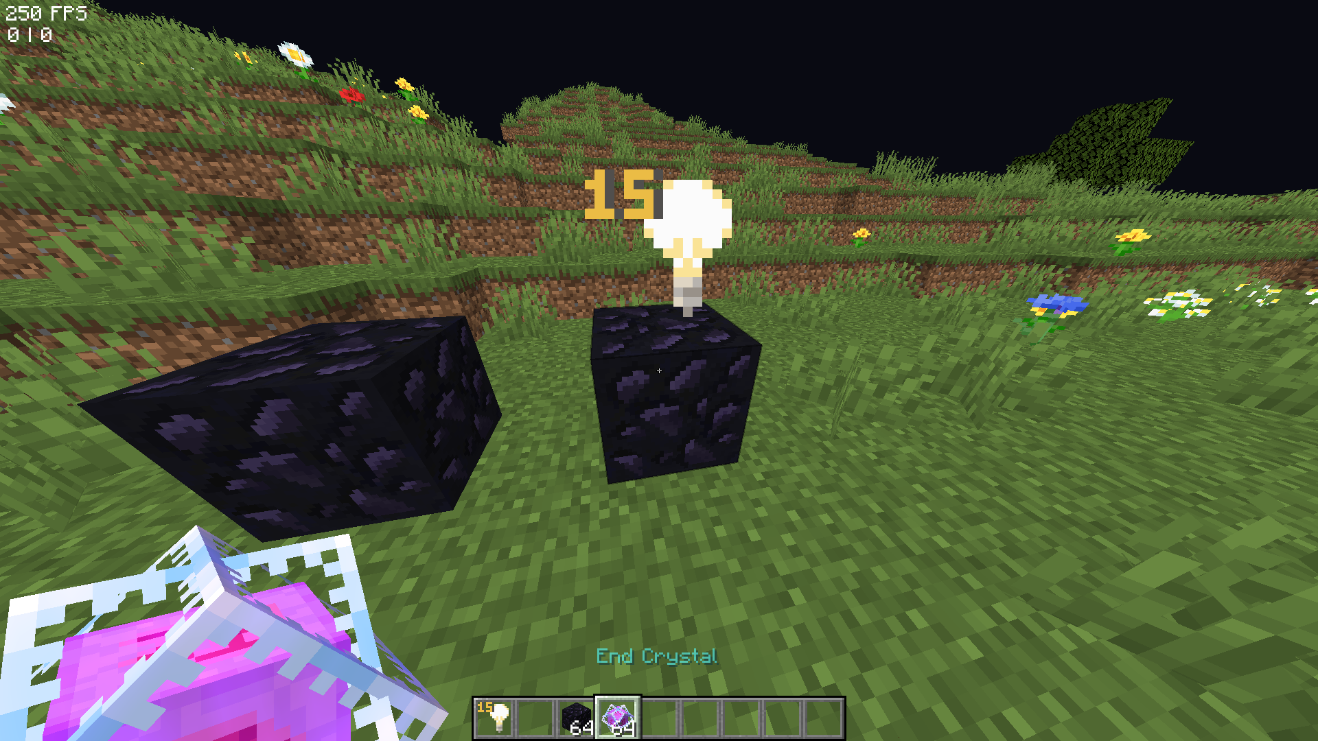 It is not possible to place end crystals on bedrock or obsidian when there is a light block on top of the obsidian or bedrock