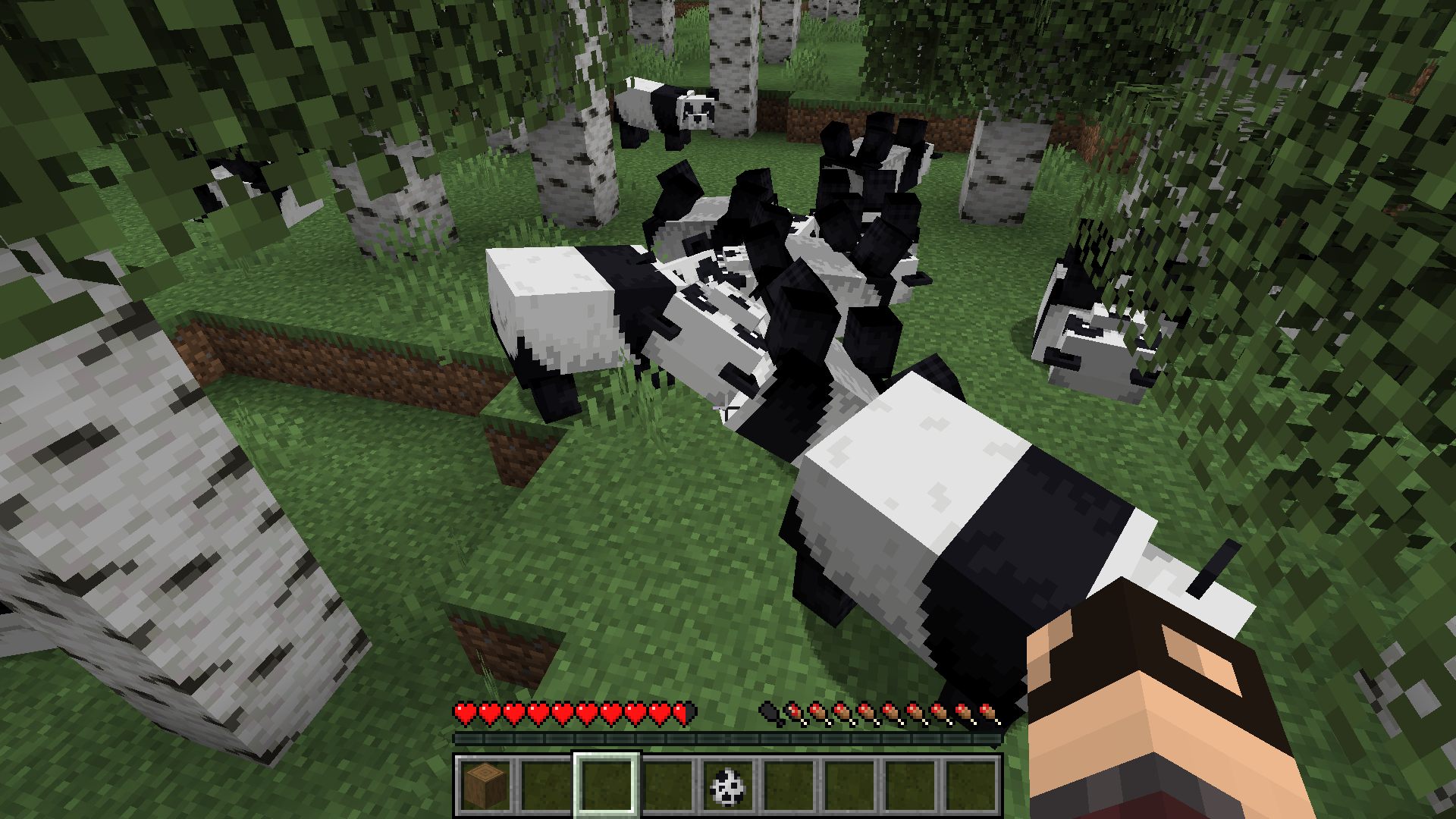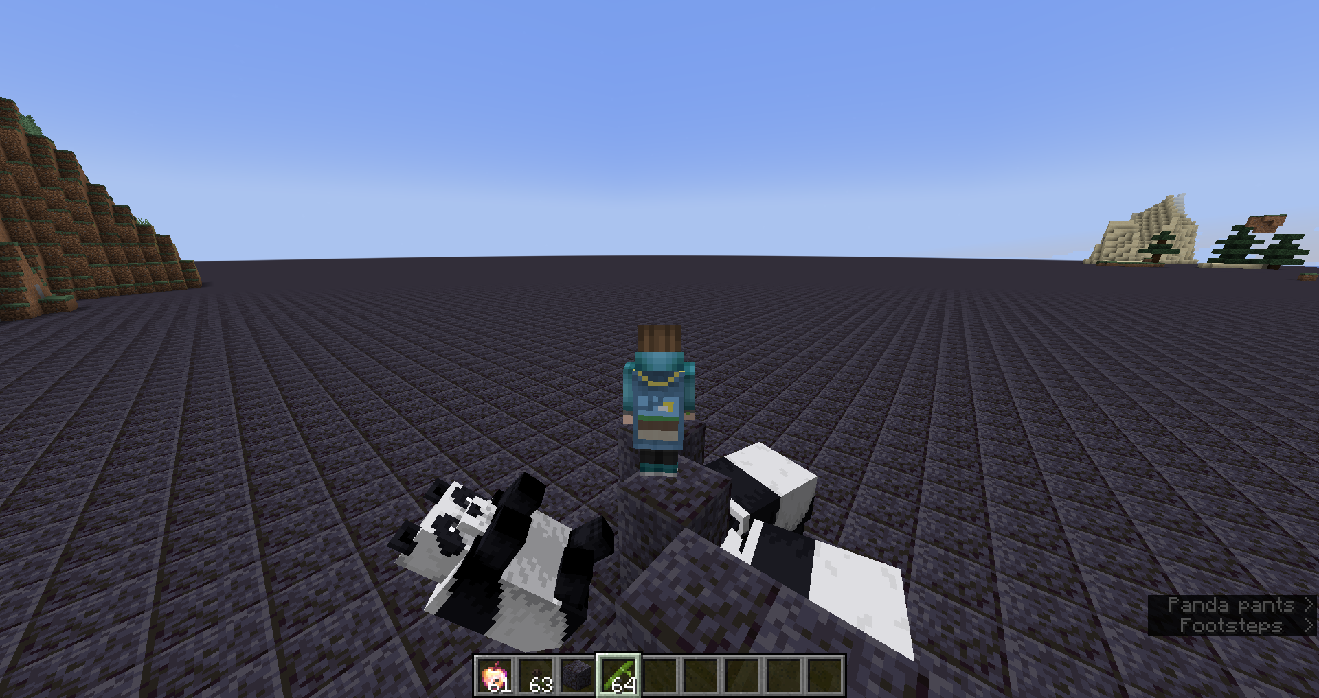 To reproduce, use the following command to summon lazy pandas, pillar up a couple blocks, and tempt them with bamboo: