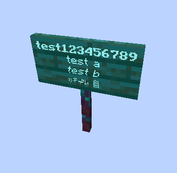 /setblock ~ ~ ~ minecraft:warped_sign{front_text:{messages:['{"text":"test","bold":true,"color":"#8eedeb"}','{"text":"test","color":"#8eedeb"}','{"text":"test","italic":true,"color":"#8eedeb"}','{"text":"test","obfuscated":true,"color":"#8eedeb"}']}}Right click the sign