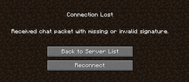 Players in minecraft java servers version 1.20.1 are getting kicked for the message