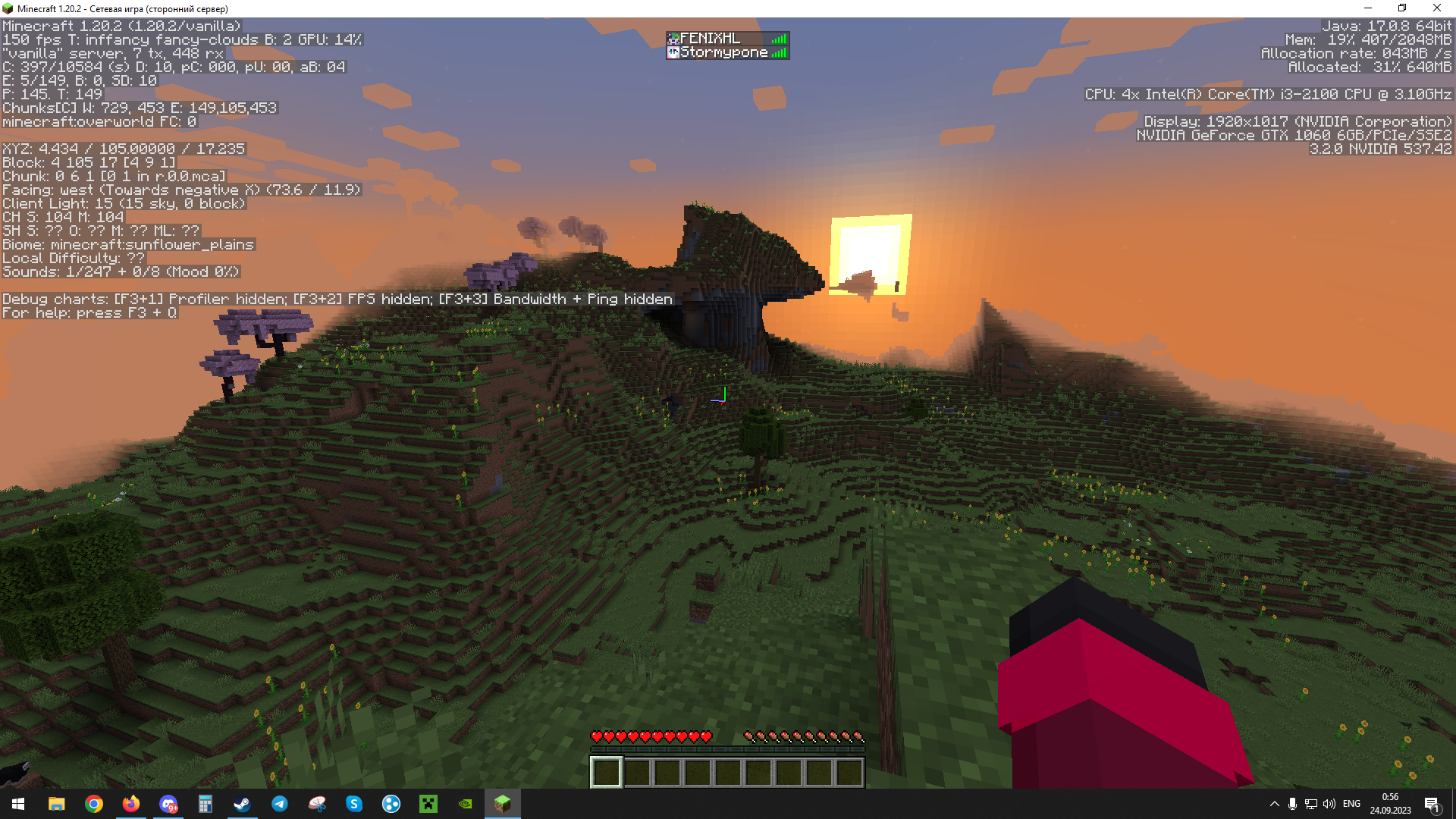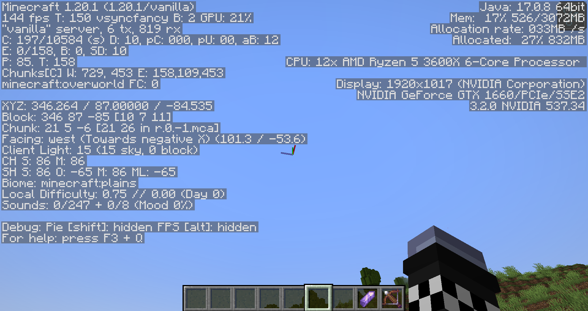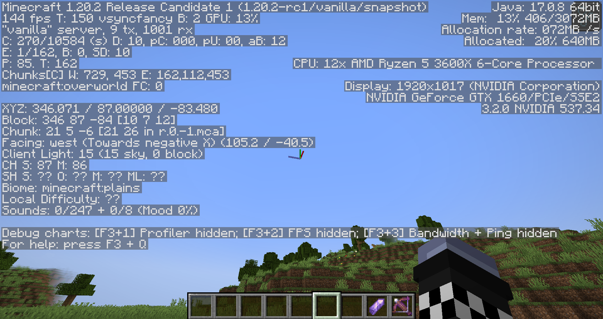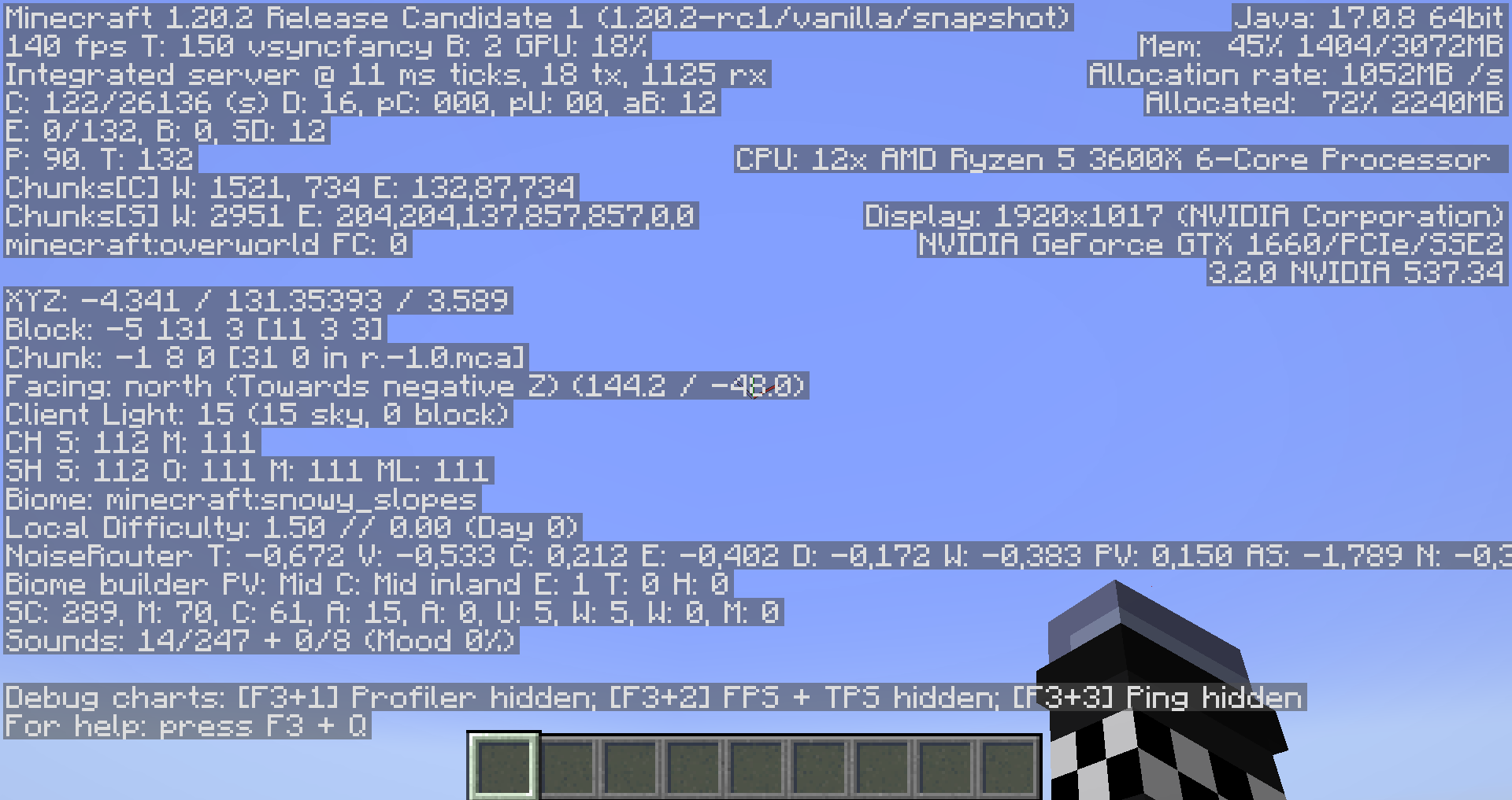Load 1.20.1 server and look at the f3 menu