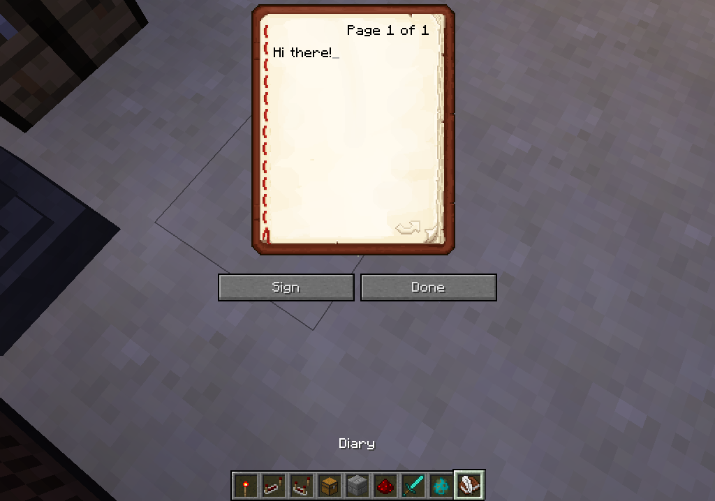 Cannot reproduce. Renamed "Book and Quill" to "Diary" and was able to write inside. See attached screenshots