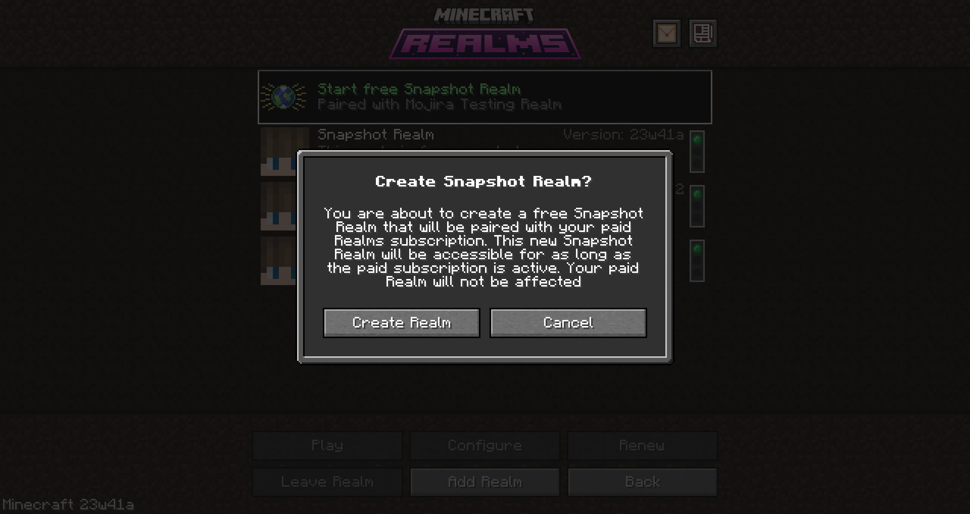 Ensure that you have a realms subscription so you're eligible to create a free snapshot realm.