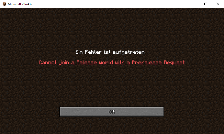 Cannot join a Release world with a Prerelease Request | This string is the default message displayed when trying to join a Realm from launcher in snapshot version. | No | N/A |