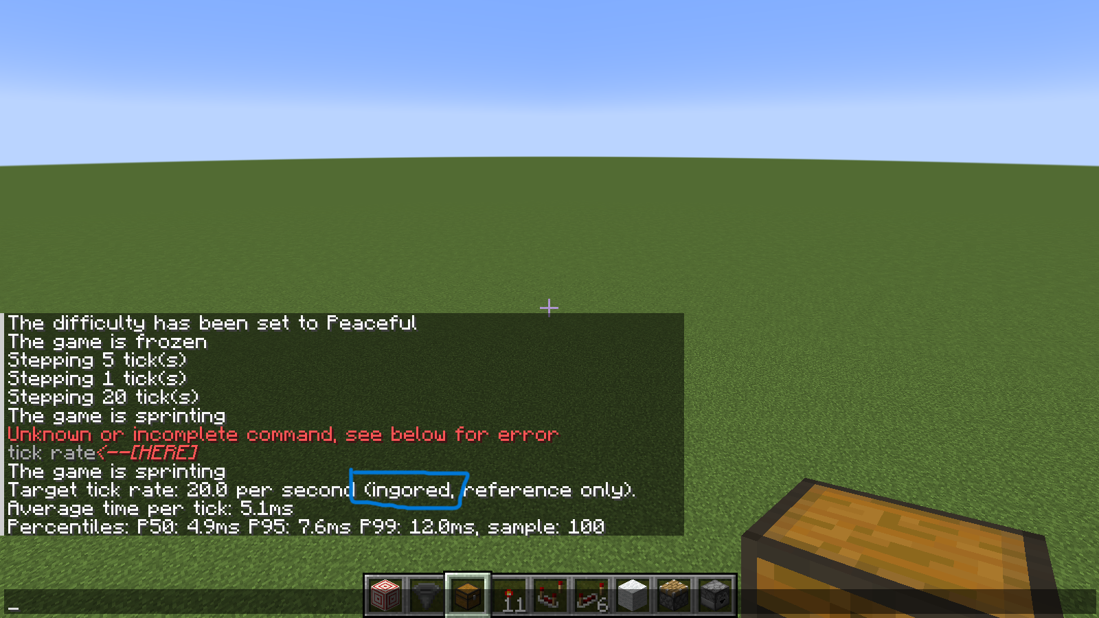 In the new /tick command, when you use "/tick query" while time is sprinting, the word "ignored" is spelled as "ingored"