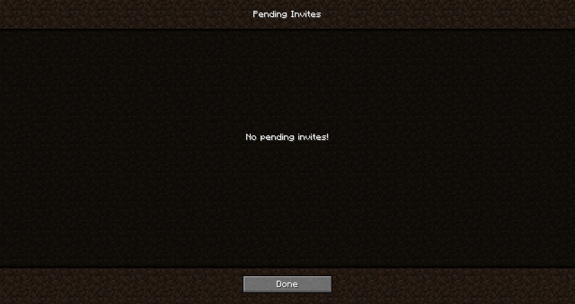 The "No pending invites!" text within the realms invitation menu cannot be selected via keyboard navigation or the mouse cursor.
