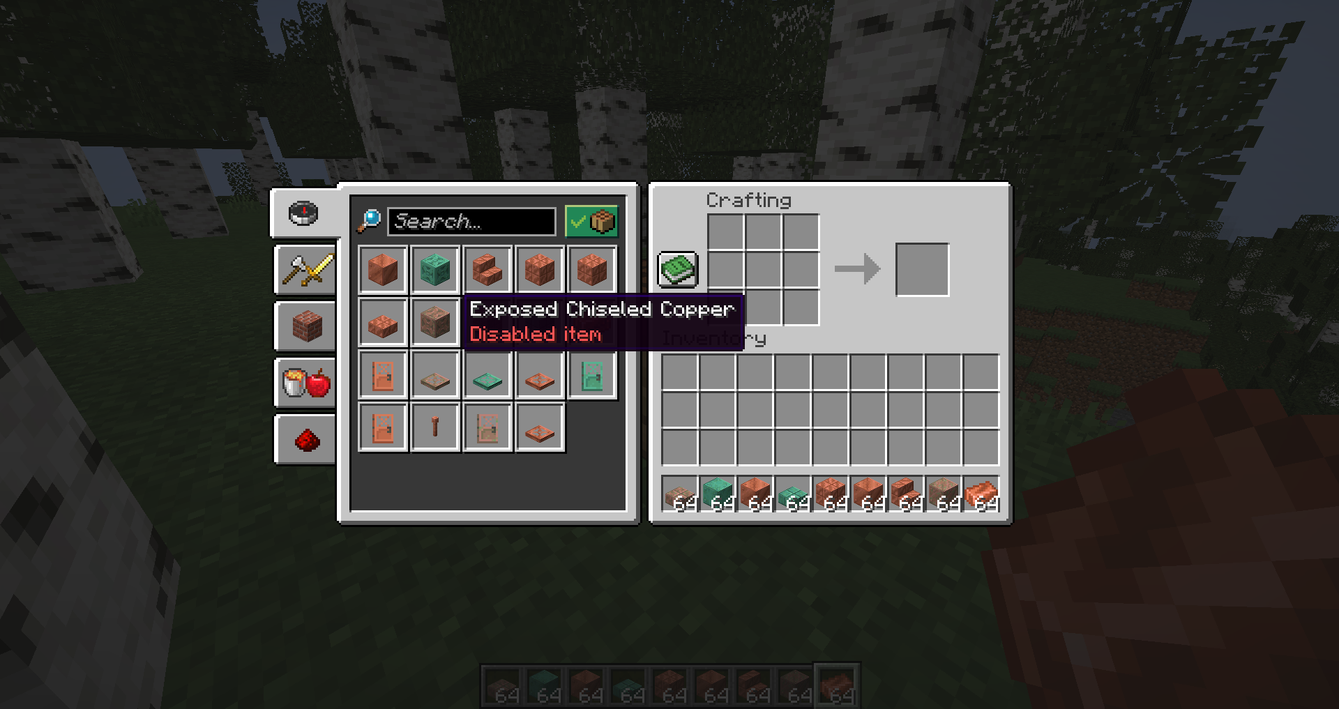 Copper Trapdoor and Copper Door appeared in the recipe book