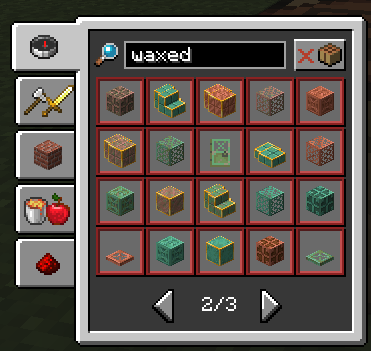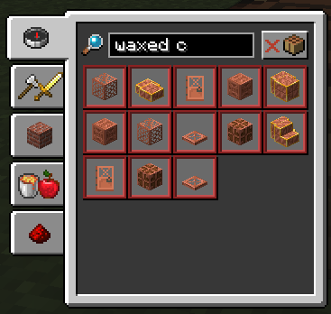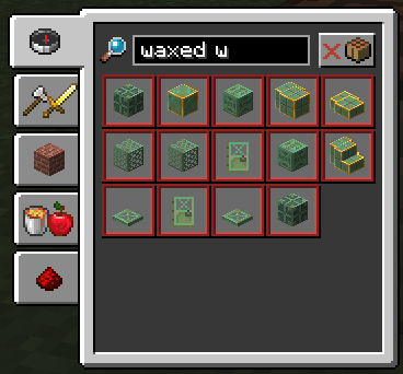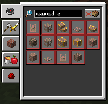 ✔ Expected: Recipes for each waxed copper block variant would be grouped together