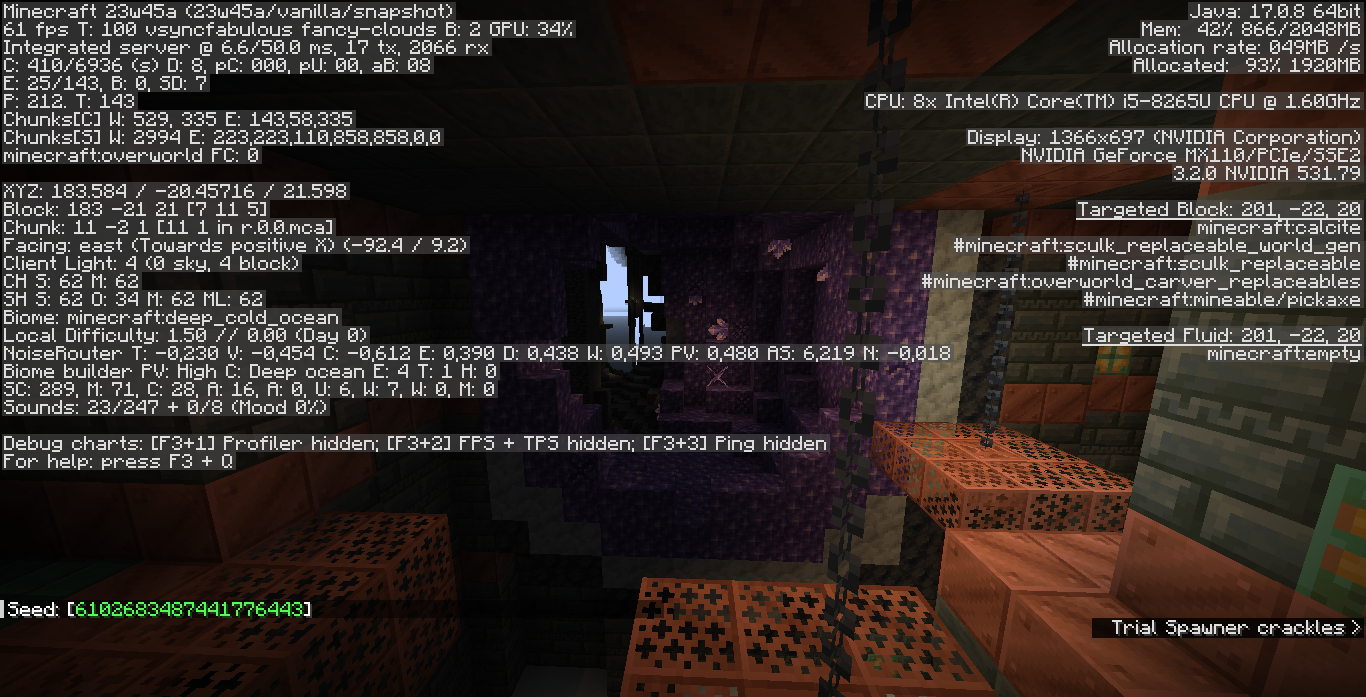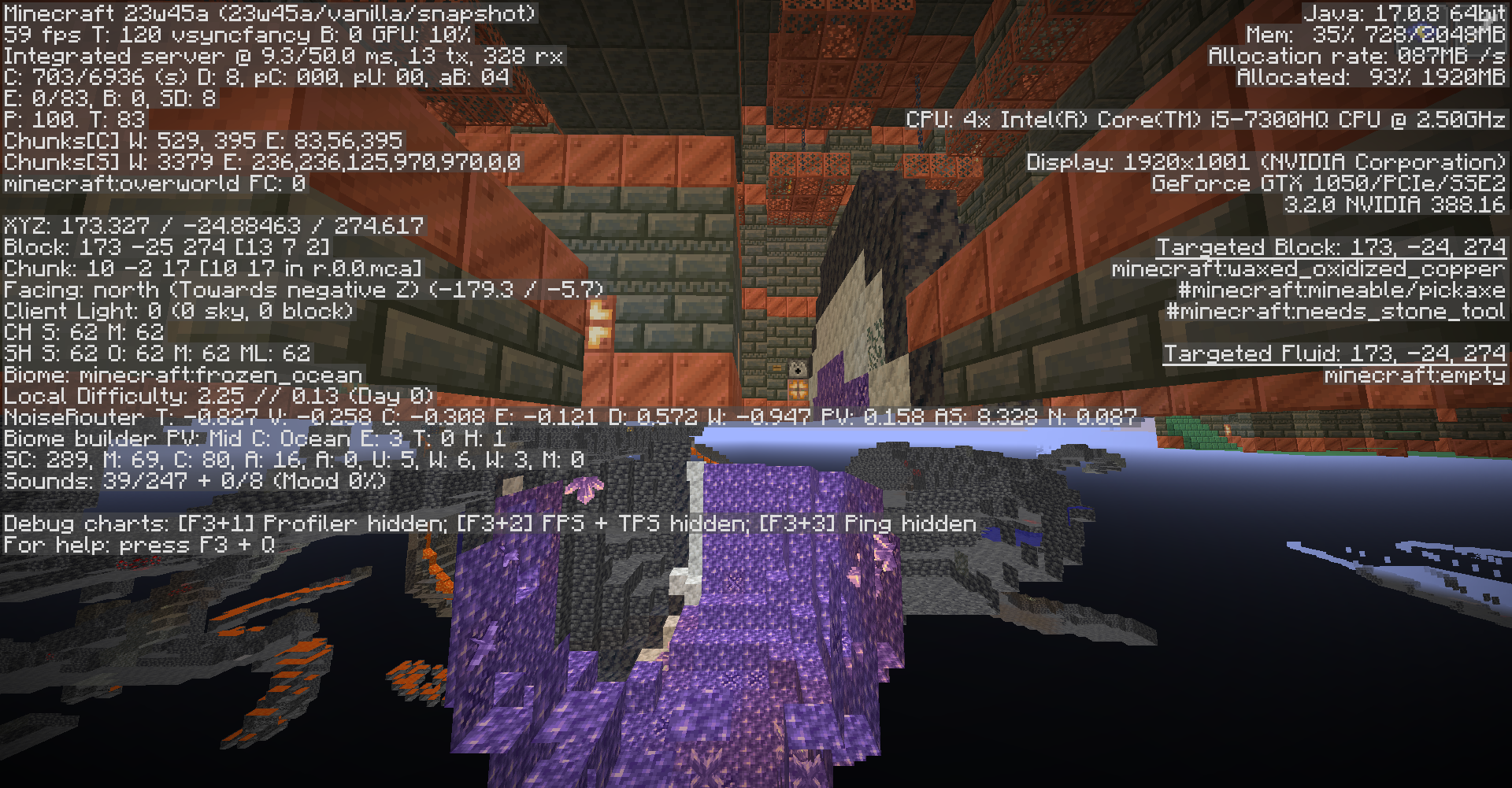 Coordinates: /execute in minecraft:overworld run tp @s 57.97 -7.57 335.88 320.53 1.06Steps to Reproduce: