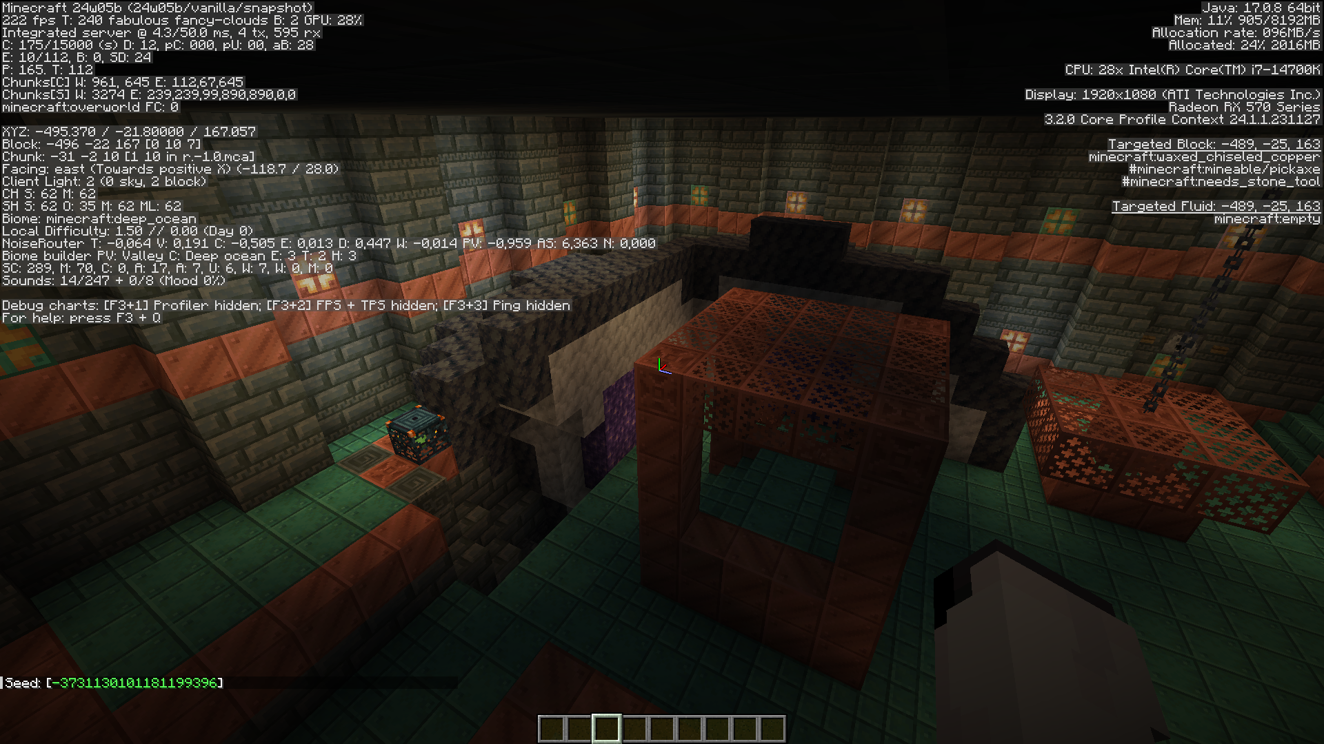 Generate a world with the seed provided above and teleport to the given coordinates.