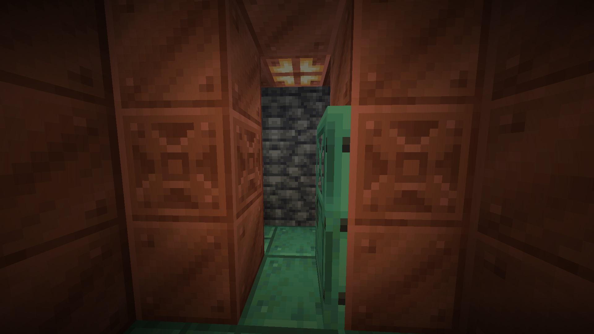 Coordinates: /execute in minecraft:overworld run tp @s 197.47 -23.00 840.48 (as well as /execute in minecraft:overworld run tp @s 192.68 -33.00 840.45, second dead end in the same structure)