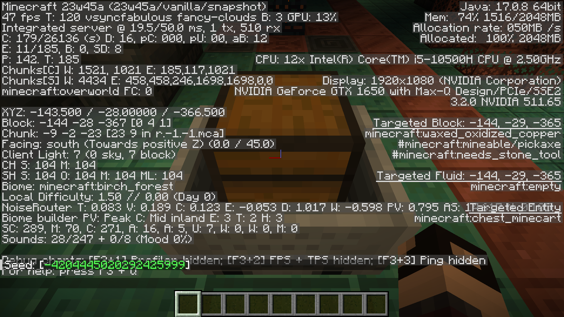 To reproduce, use the seed -4204445020292425999 and run the following command: