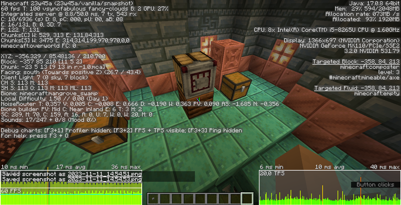 ❌ See if the composter went up more than one level (normally 8 cookies would raise it a few levels)Switch to spectator mode (F3 + N)