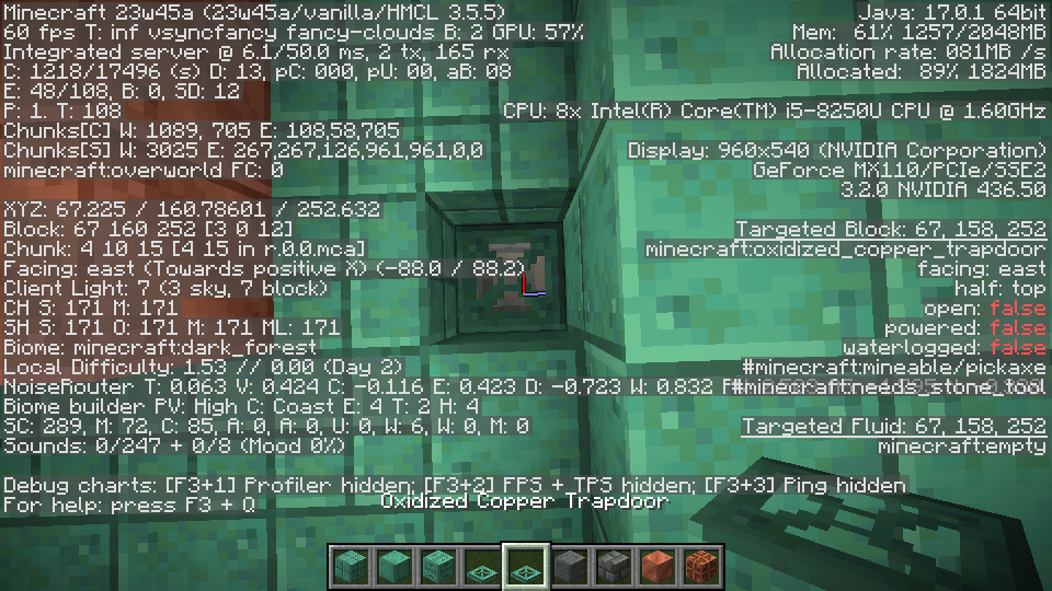 The waxing state of two oxidized copper trapdoors are different in the structure trial_chambers/corridor/entrance_1.