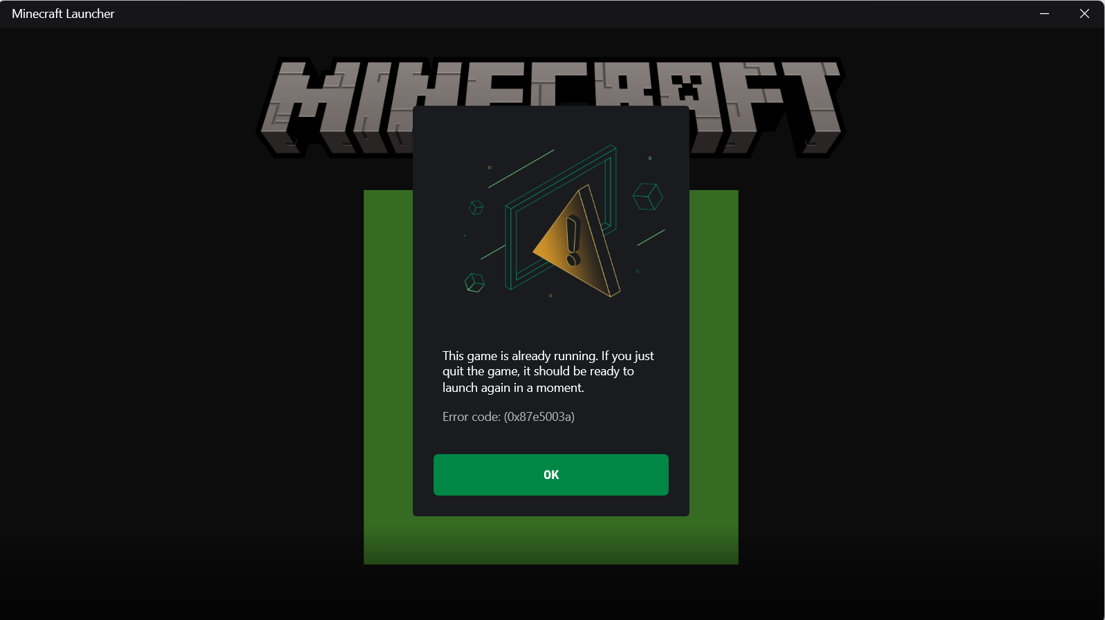 After clicking "Quit Game" within Minecraft Java and then immediately opening the launcher, the same error message will appear as listed at issue 1