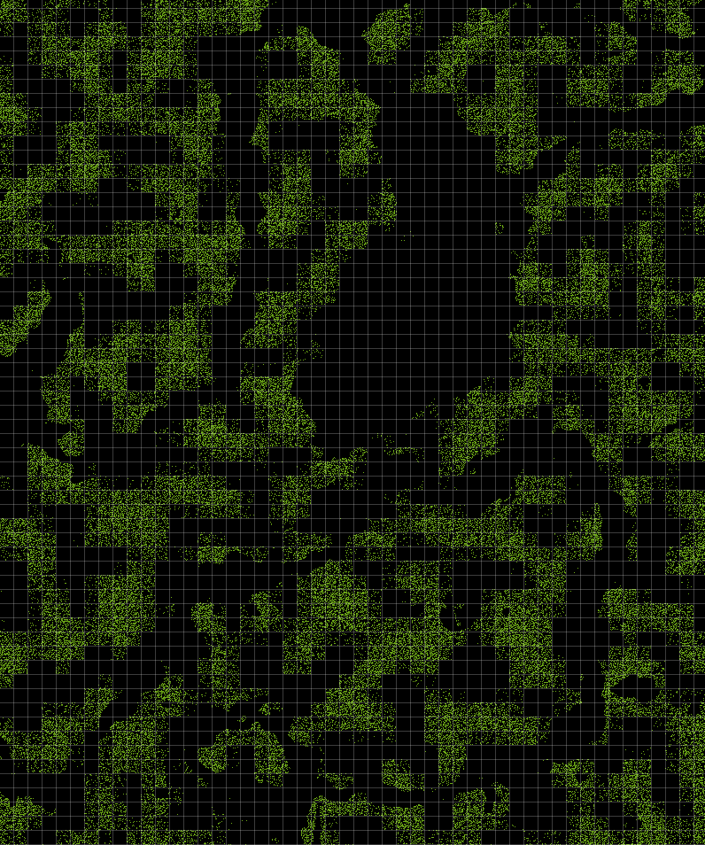 Bamboo in bamboo jungles and kelp in oceans noticeably generate in a chunk-based grid, unlike other features. This is especially visible at biome borders.
