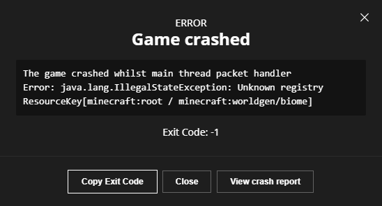 Conversely, a similar situation happens with the minecraft:chat_type registry and both ClientboundDisguisedChatPacket and ClientboundPlayerChatPacket packets. However, the client instead disconnects gracefully from the server with a multiplayer.disconnect.invalid_packet message instead of hard crashing, which was perhaps the intended behavior for the others?