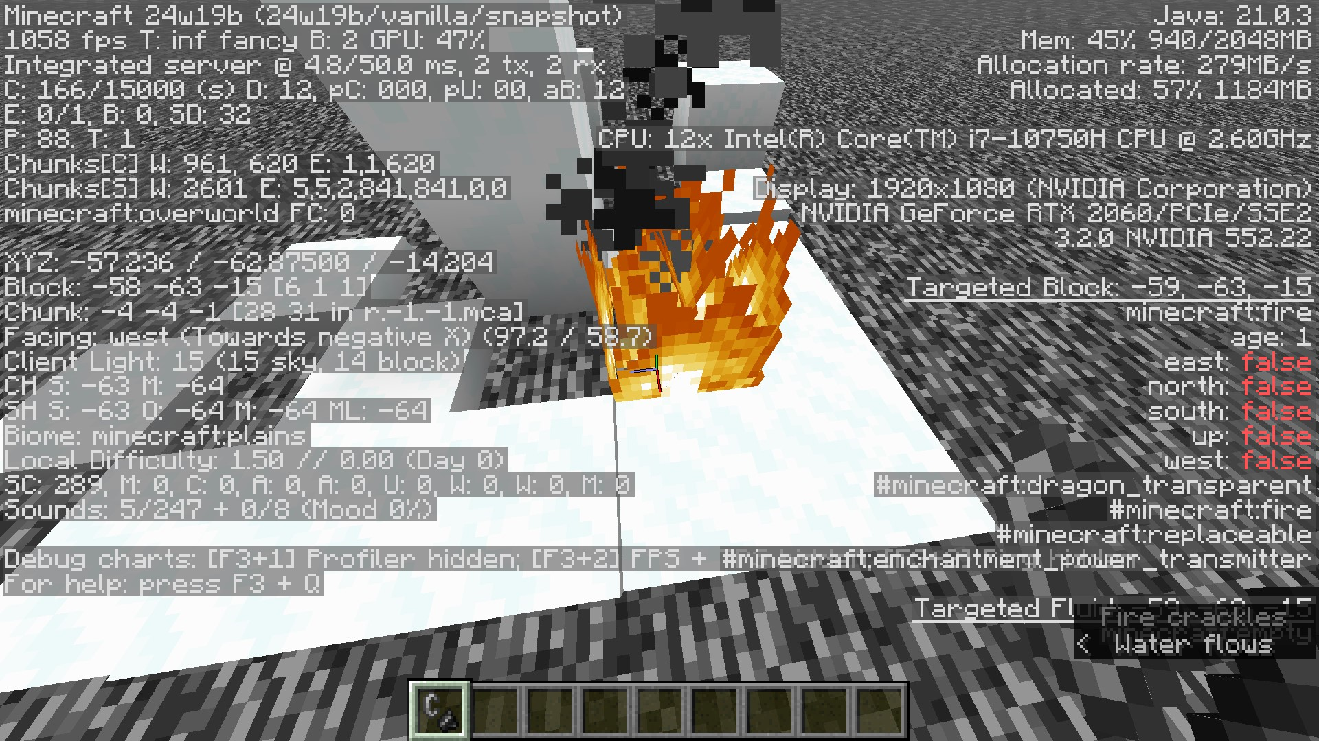 Right clicking the firecauses the displayed "age" value to instantly increase from 0 to 1, implying that the block's state change on the server was not communicated to the client until a player interaction with this block forced it to update client-side.