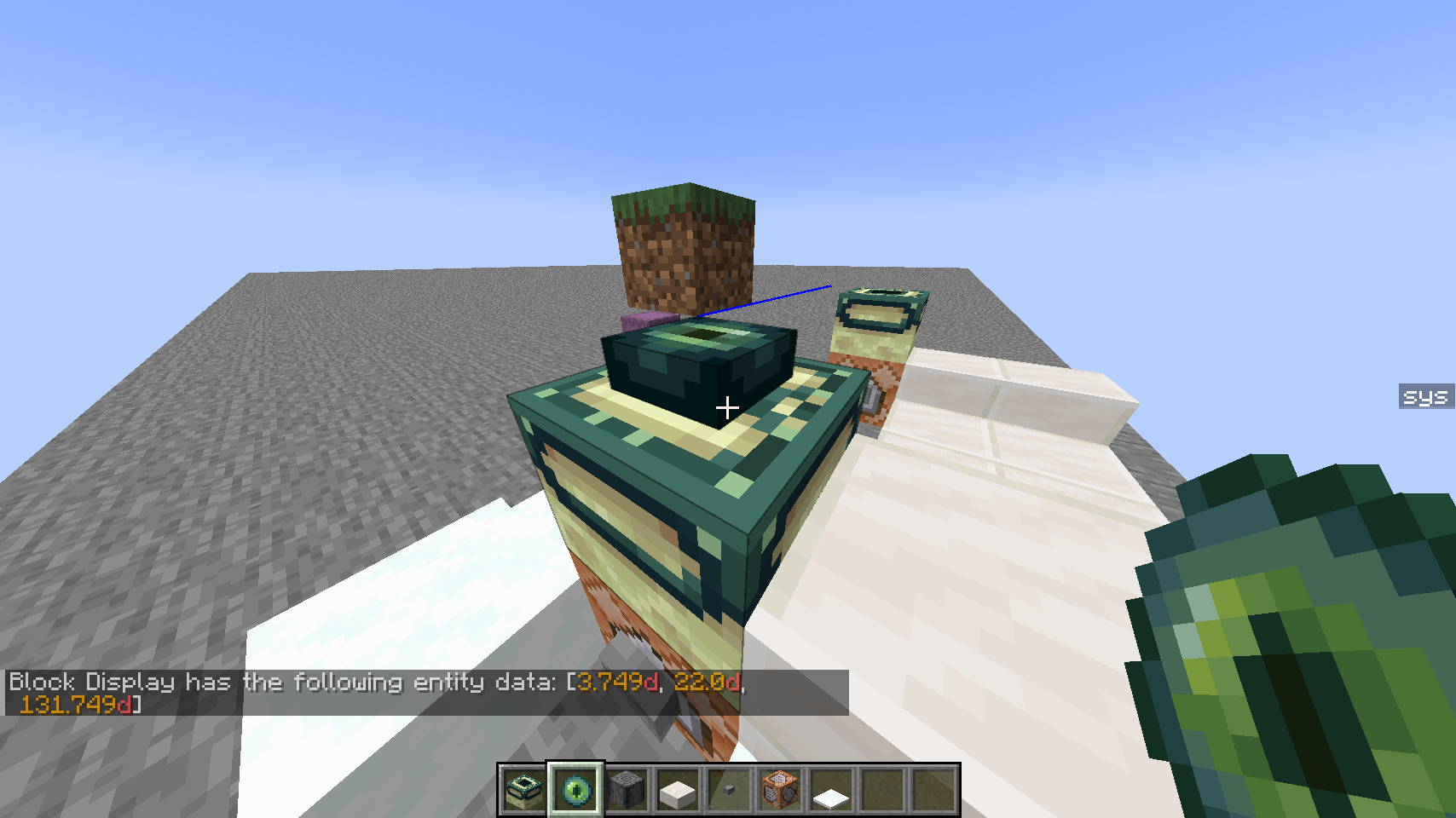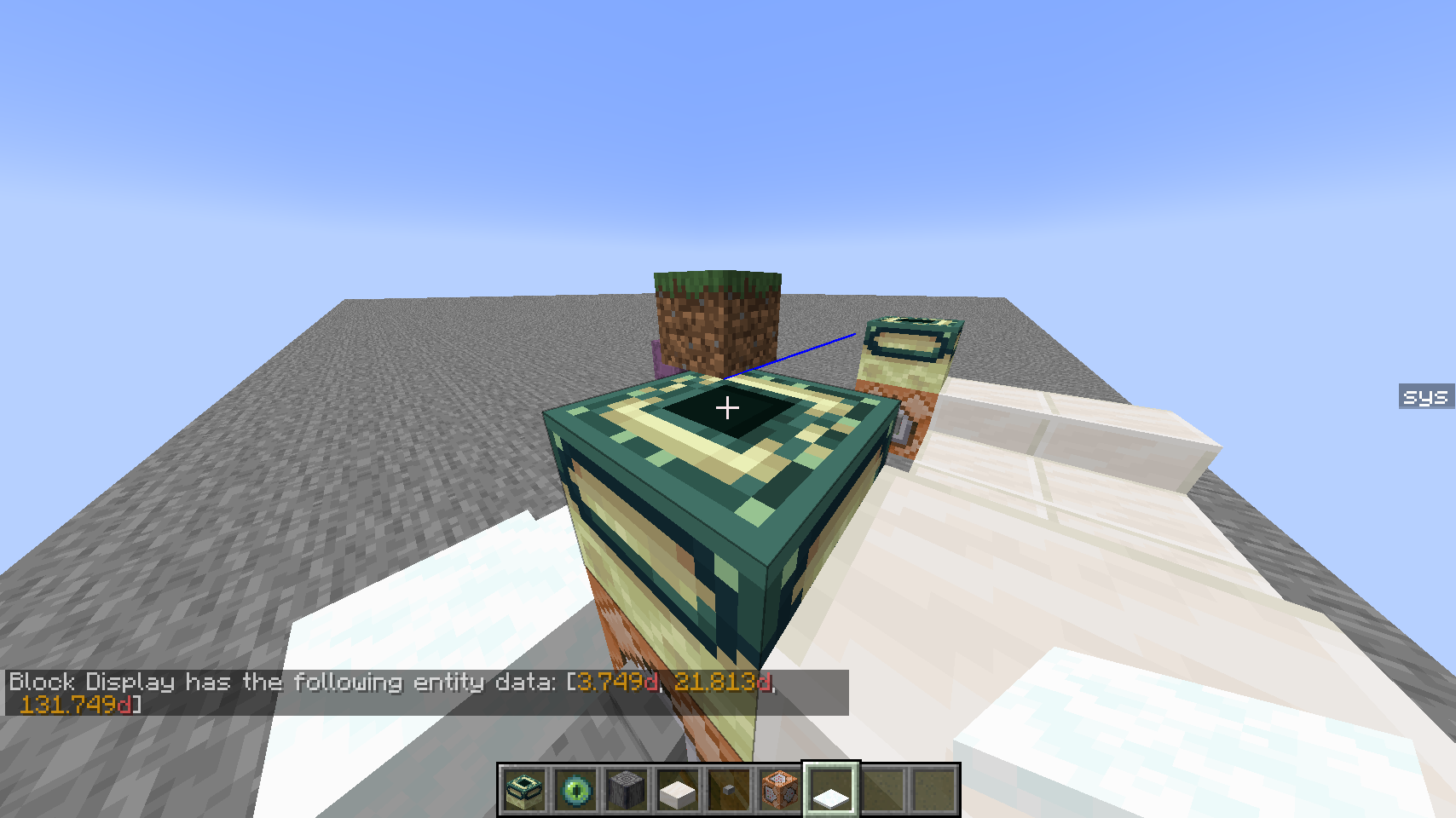Place the Eye of Ender and check the position again with the same command in step 3.