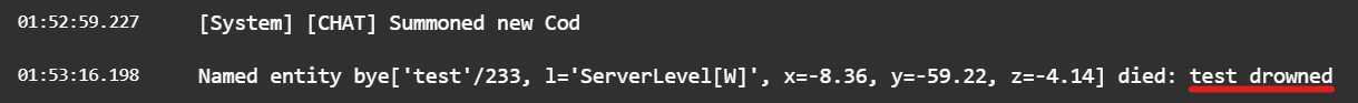 Although, if the death message is intentional and works as intended, if it were to change, it'd probably be more apt to rename it to "suffocated" rather than "died from dehydration", as the latter is only used for axolotls and dolphins.