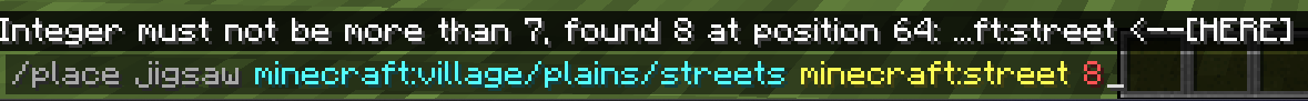 When using "/place jigsaw", the game does not allow depth values over 7, returning the error "Integer must not be more than 7". However, physically placed jigsaw blocks were updated to allow depth values up to 20, so I expected to be able to also use /place with depth values up to 20 as well.