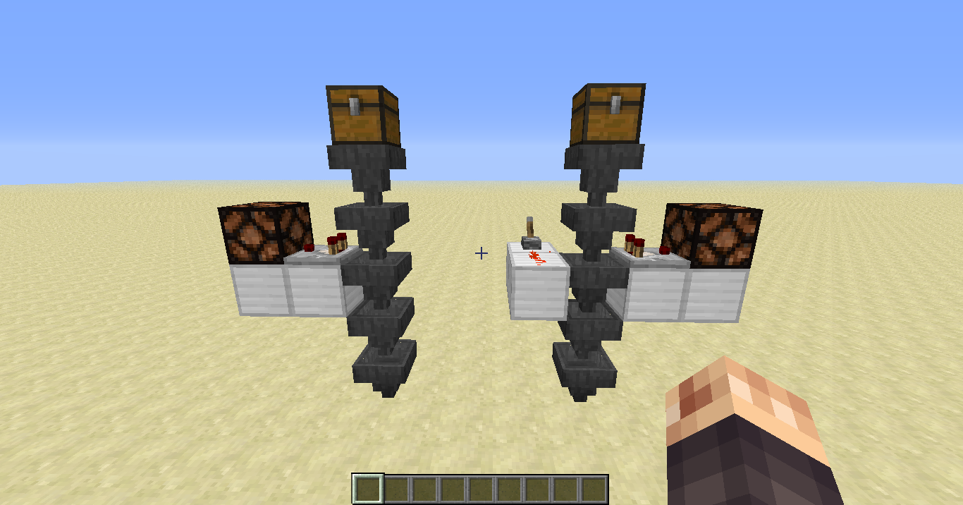 The left side has no output from the comparator while the items are moving. The right side does receive output because of an indirect redstone signal. This make no sense - almost as if the redstone is slowing the item down enough for the comparator to make a signal. Note that the redstone signal does not close the hopper.