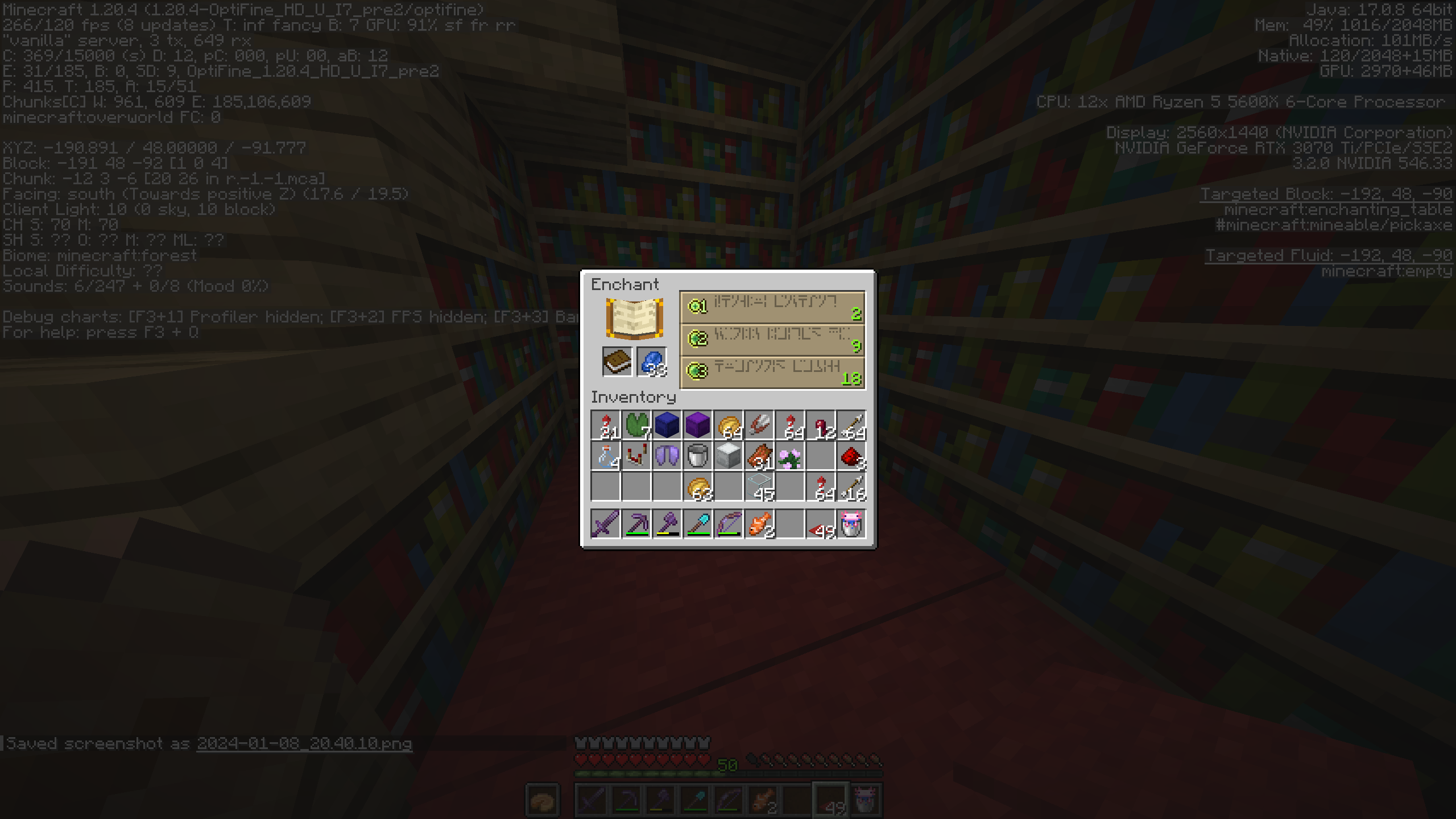 4. Observe and try to place level 30 enchantments onto an enchantable item