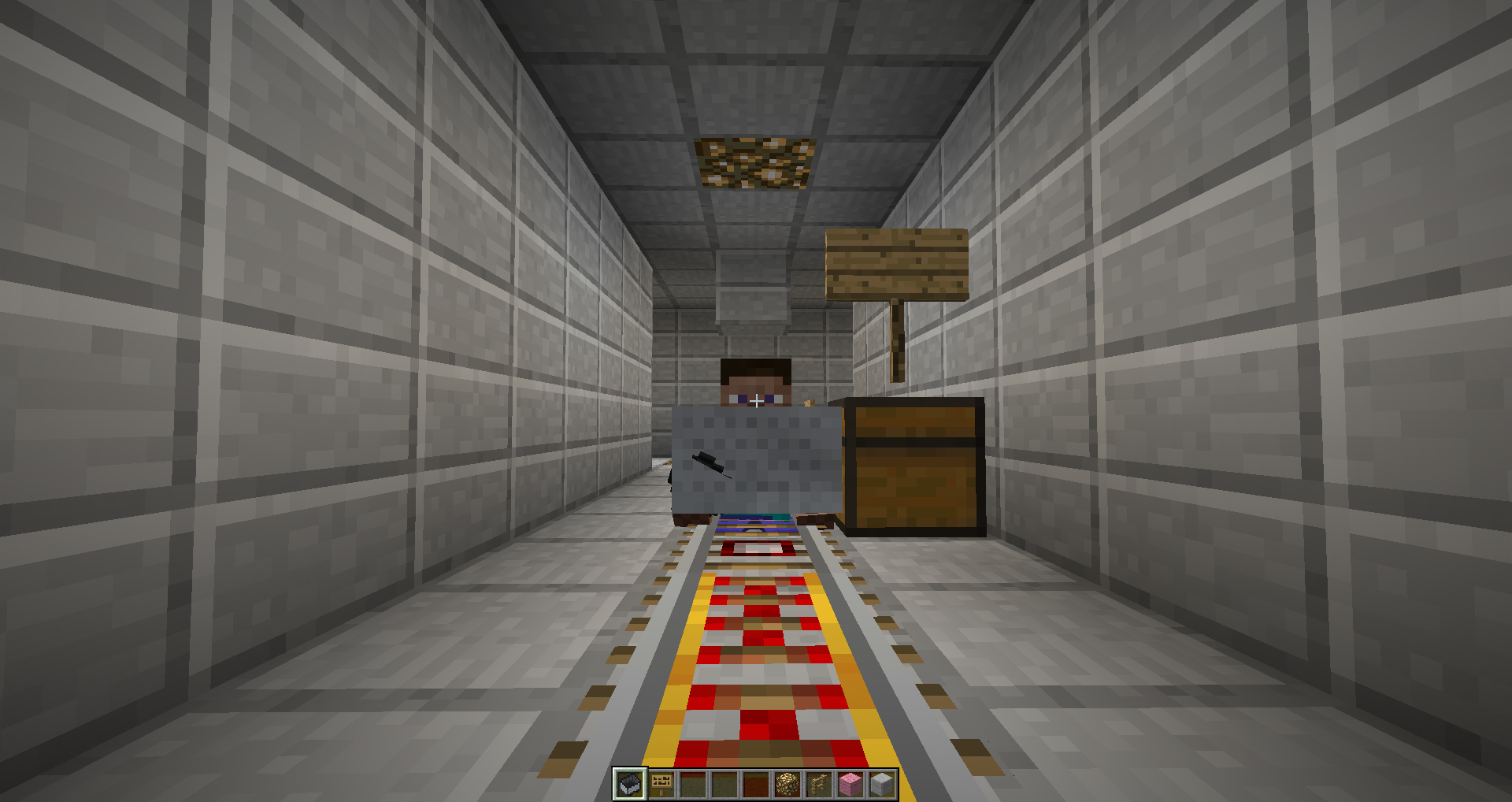 So I was riding one of my Subway Stations (by minecart (no mods)) and all of a sudden, I appear (while riding) in the ground and my head is outside. I've made a screenshot and did not want to show my skin (I don't know why). I do not know if someone else has reported this BUT I've searched it and there were no results. I hope this isn't a major bug or something.