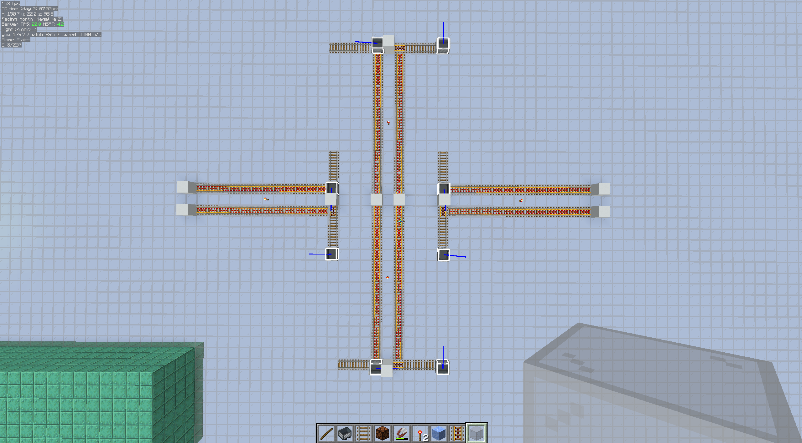Minecarts T-boning an intersection seem to transfer their momentum biased towards a specific cardinal direction, causing the same build in different rotation/flipped states to behave unpredictably.