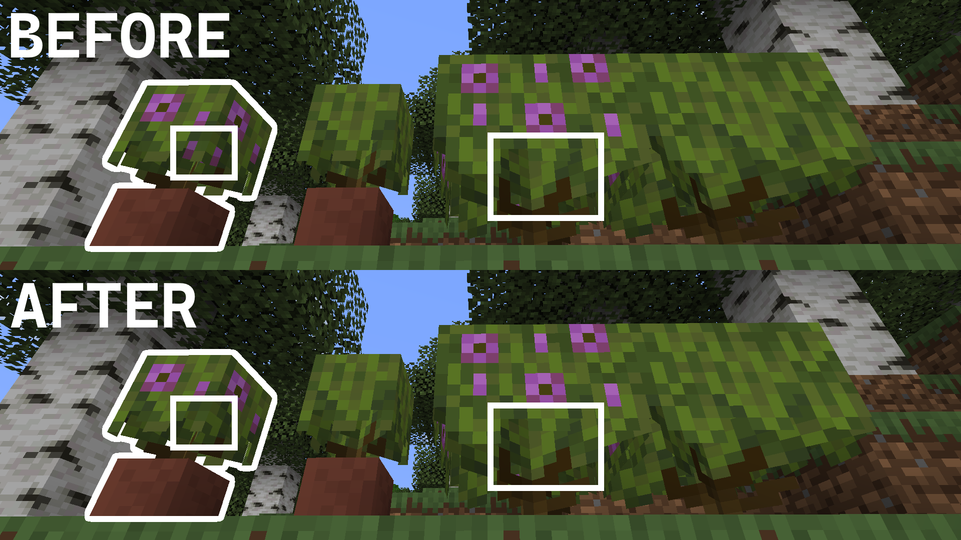 The inside of the flowering azalea is using the "azalea_plant.png" texture. This means the flowering azalea only has flowers on the sides of the model.