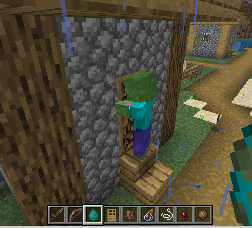 NBT tag, but they usually fails when tries to break doors by random pathfinding (they just trying to break the door a few times, then give up breaking the doors and walk away). So the zombies can only reach and see the villager if the house's door is not closed, and I did not see anything about the behavior being removed when I looked on the wiki, and the wiki still describing this point. (see the attached image below).