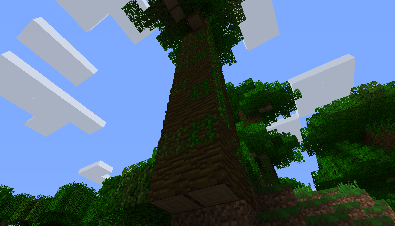 When the map generates under the seed 8015411986934972105 there is a big jungle tree at location -72 65 -120 that only has two blocks of wood on dirt while two other aren't. Screenshot attached.