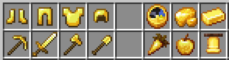 And here is are golden armor and tools next to other gold items: