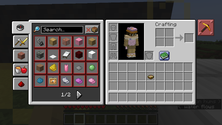 The background panel at the top right of the screen would be translucent, and the one in the inventory would also be translucent.