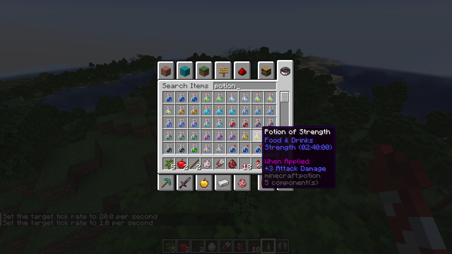 Potion duration (in UI and potion/tipped arrow item tooltip) is adjusted to account for the tick rate