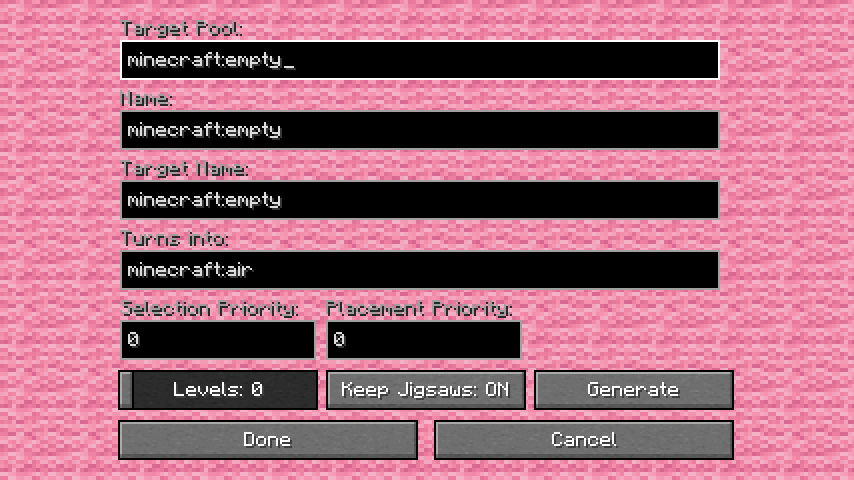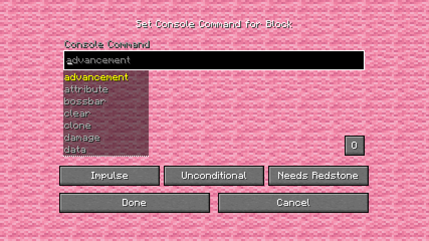 It is no longer possible to change the texture used in the background while configuring command blocks, structure blocks or jigsaw blocks.