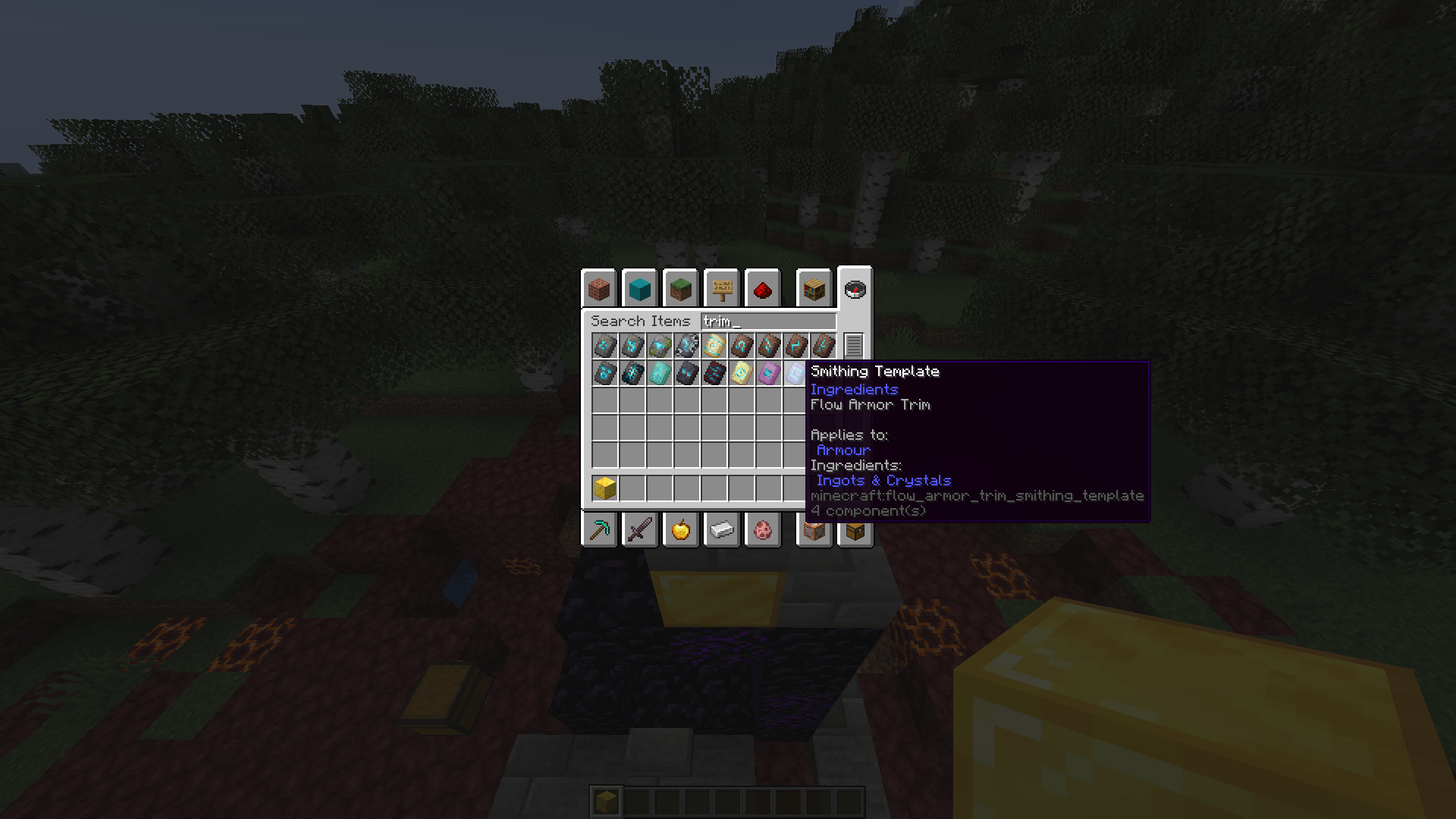 When the game is set to a version of English other than American, such as Canadian English, all armour trims will be spelt “armour” and not “armor”.