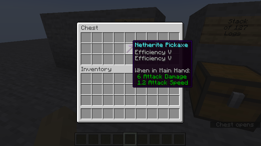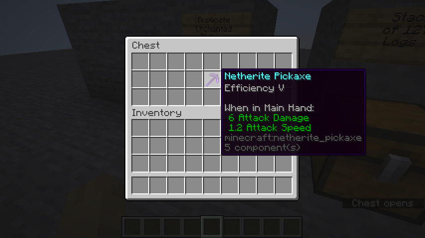 A world containing a netherite pickaxe with two instances of Efficiency V is attached to this ticket.