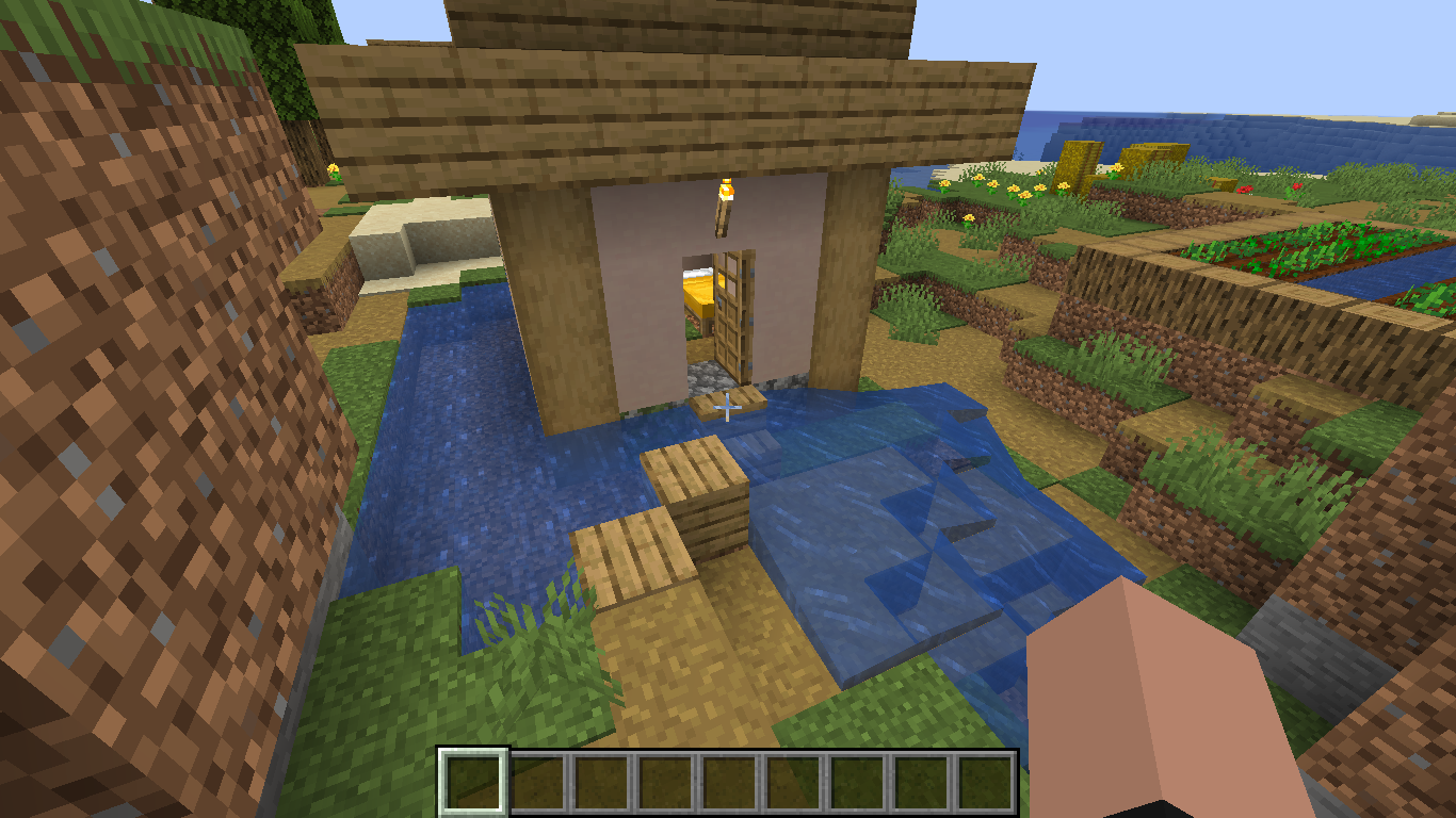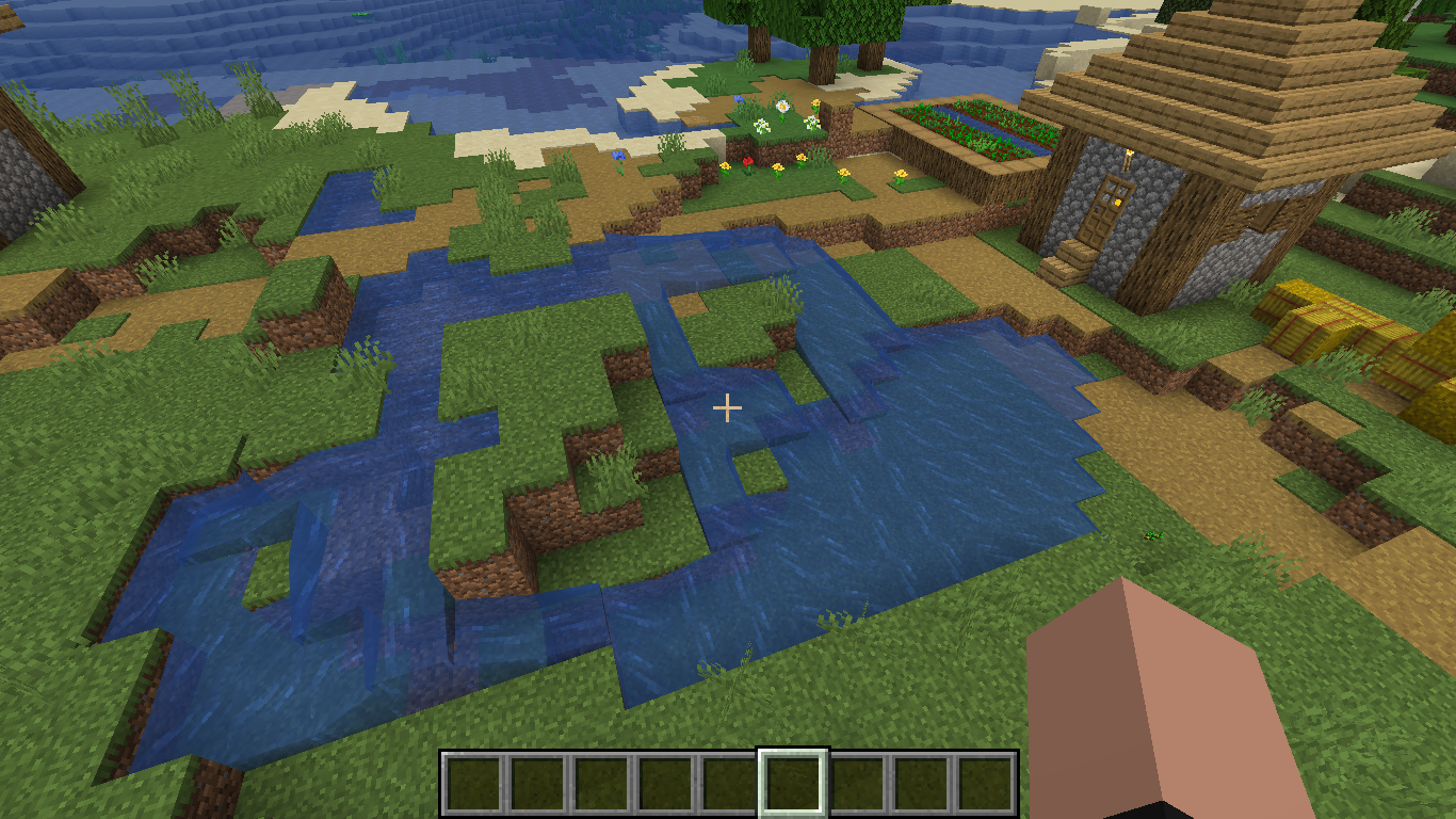 The water is clipping through the village houses and stuff