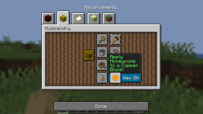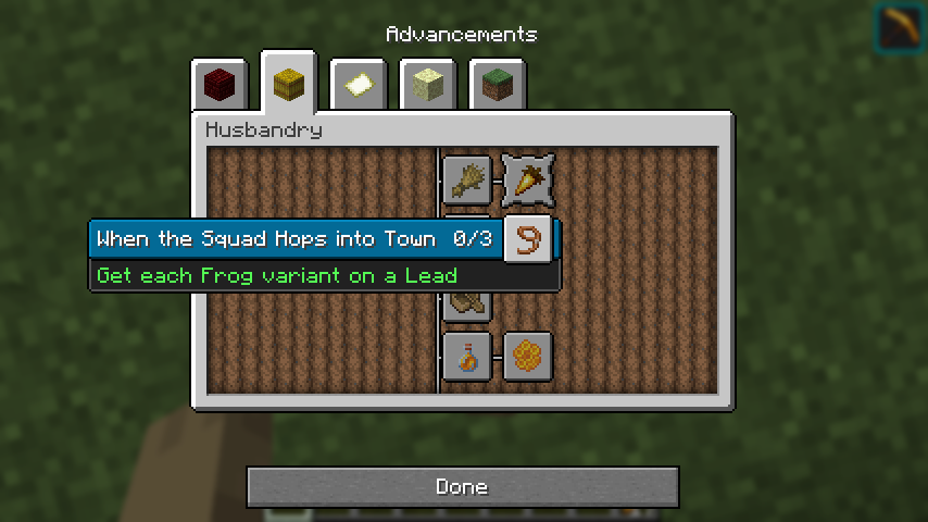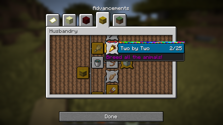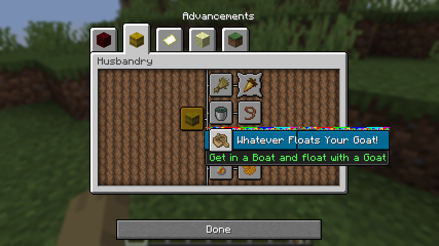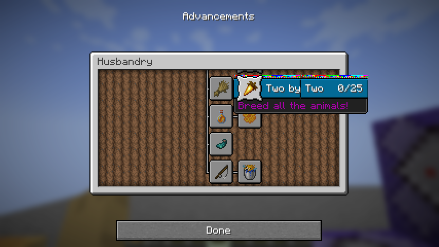 The textures box_obtained and box_unobtained.png, from textures/gui/sprites/advancements, use what I assume must be nine-slice scaling to accommodate different advancement name lengths. However, this scaling does not appear to be controlled via json files, unlike all other UI sprites which use a scaling system such as buttons, sliders and scroll bars, and adding in your own json files for them causes strange, unexpected graphical results.