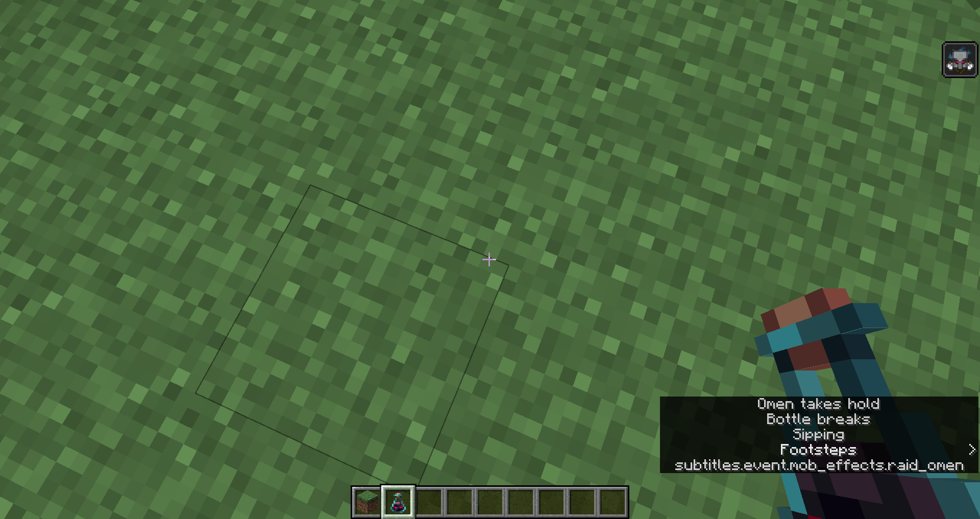 The subtitle for the "minecraft:event.mob_effect.raid_omen" sound event displays as a raw translation string.