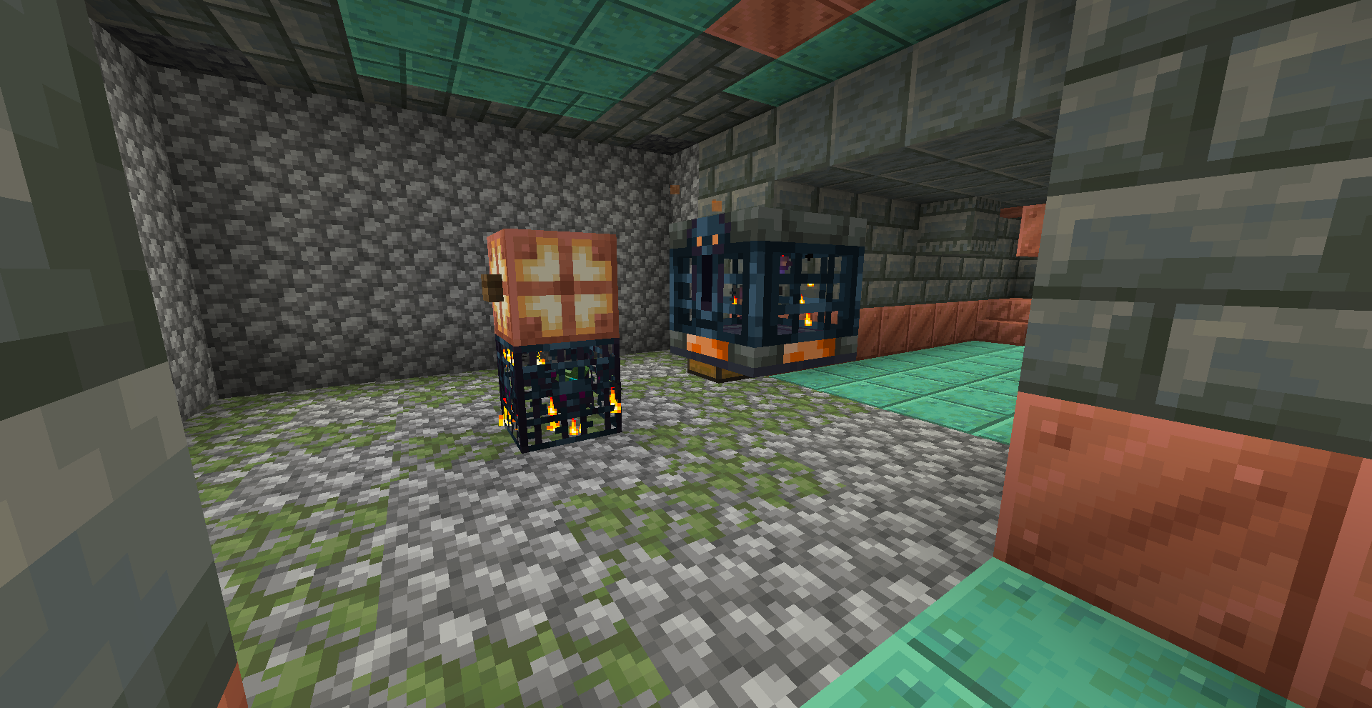 It would seem that Dungeons can generate in Trial Chambers and override parts of the structure. As seen here, there's a vault floating mid-air that is surrounded by cobble and the Dungeon spawner where I would have expected a raised platform for the Vault to be.