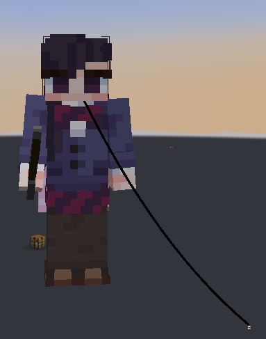→ ❌ The line is placed unrelated to the fishing rod item.