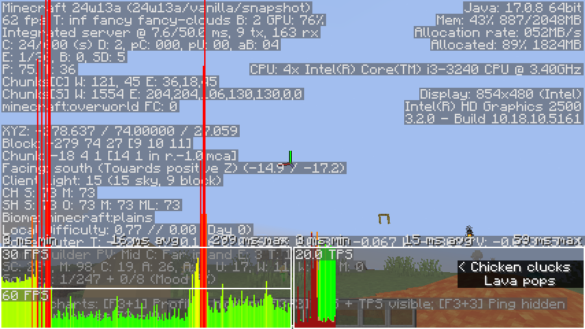 If performance is sufficiently low, the F3+2 graphs can exceed the upper boundary of the window, making their true values impossible to see. This also results in other debug information being obscured as a result, making this a considerable accessibility/usability issue.
