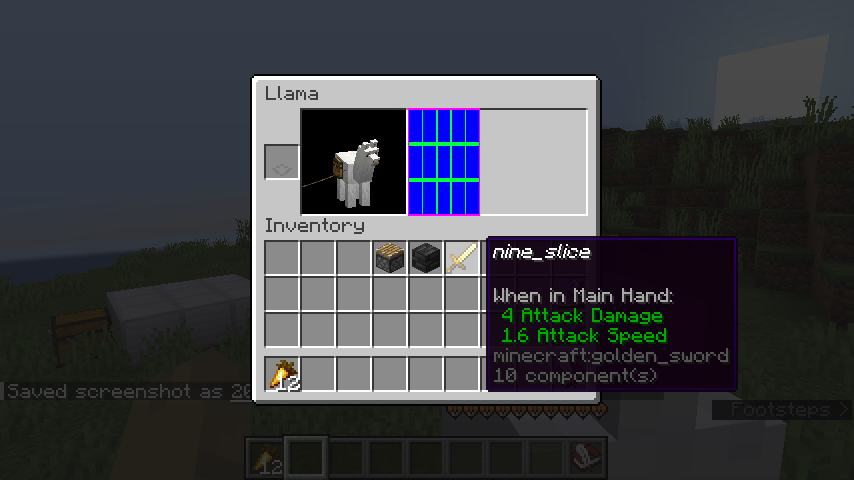 For "nine_slice", the texture is pre-ninesliced and then truncated to indicate the amount of slots. This is almost correct, however the rightmost part of the rightmost slots are not purple as expected.