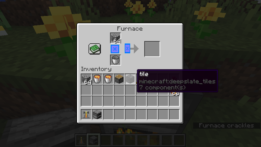If .mcmeta files are used to define how the arrow texture and fire texture used inside furnace, blast furnace and smoker inventories scale with size changes, unexpected and unsightly results follow.