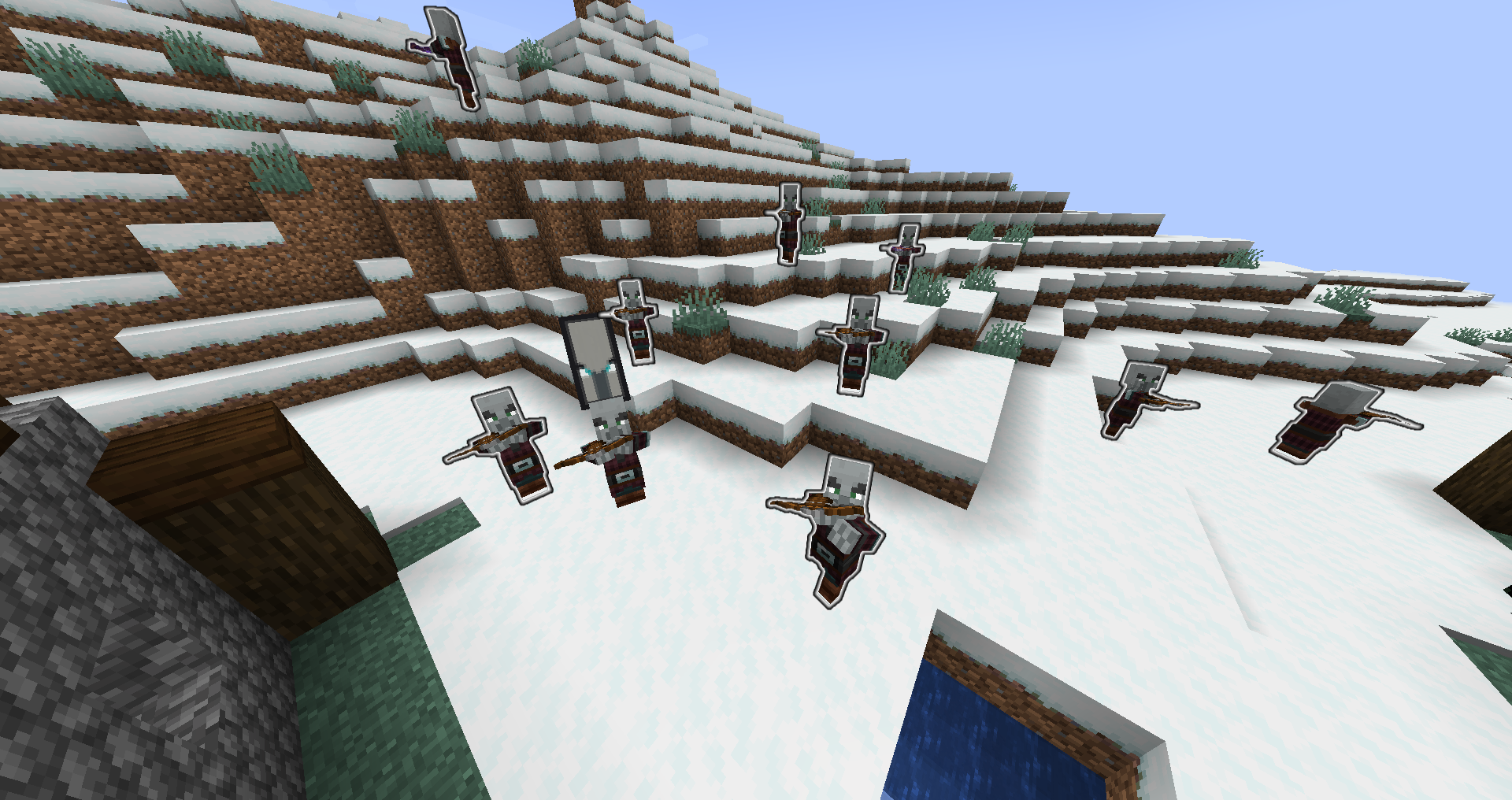}Then go to a pillager outpost, find a captain and non-captain pillager, and run the following command: