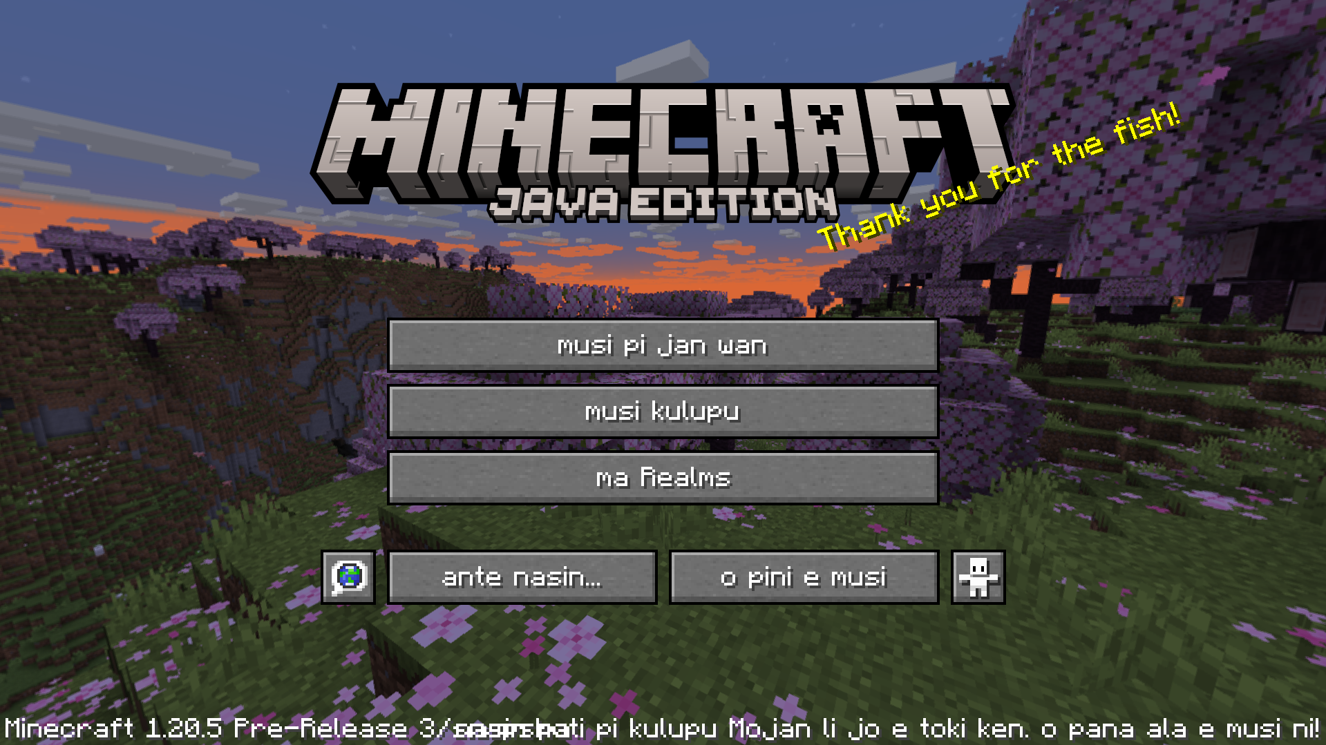 Toki Pona version of "Copyright of Mojang AB. Do Not Distribute!" Overlaps Minecraft Version